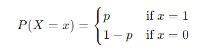 - 기대값 E[X] = 1⋅p + 0⋅(1-p) = p