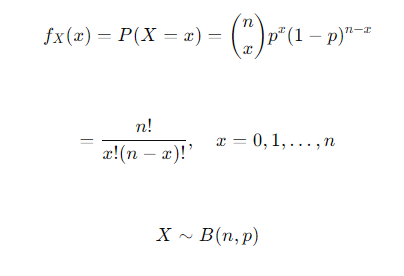 - 서로 독립인 베르누이 시행을 n번 반복해서 실행 했을 때, 성공한 횟수 X의 확률 분포
