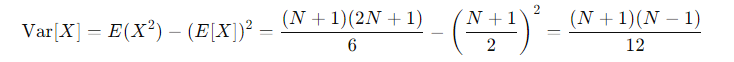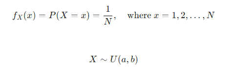 - 확률 변수 X가 유한개이고, 모든 확률 변수에 대하여 균일한 확률을 갖는 분포를 이산형 균등 분포라고 함