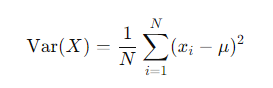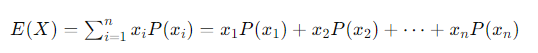 - 확률 변수의 평균 : 기대값이라고 표현하기도 하며, 수식은 아래와 같다.