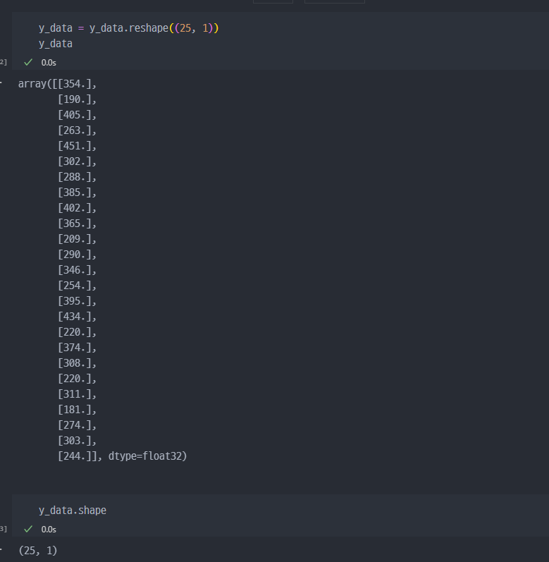 x_data는 25X2 행렬이고,y_data는 25, 행렬이다.