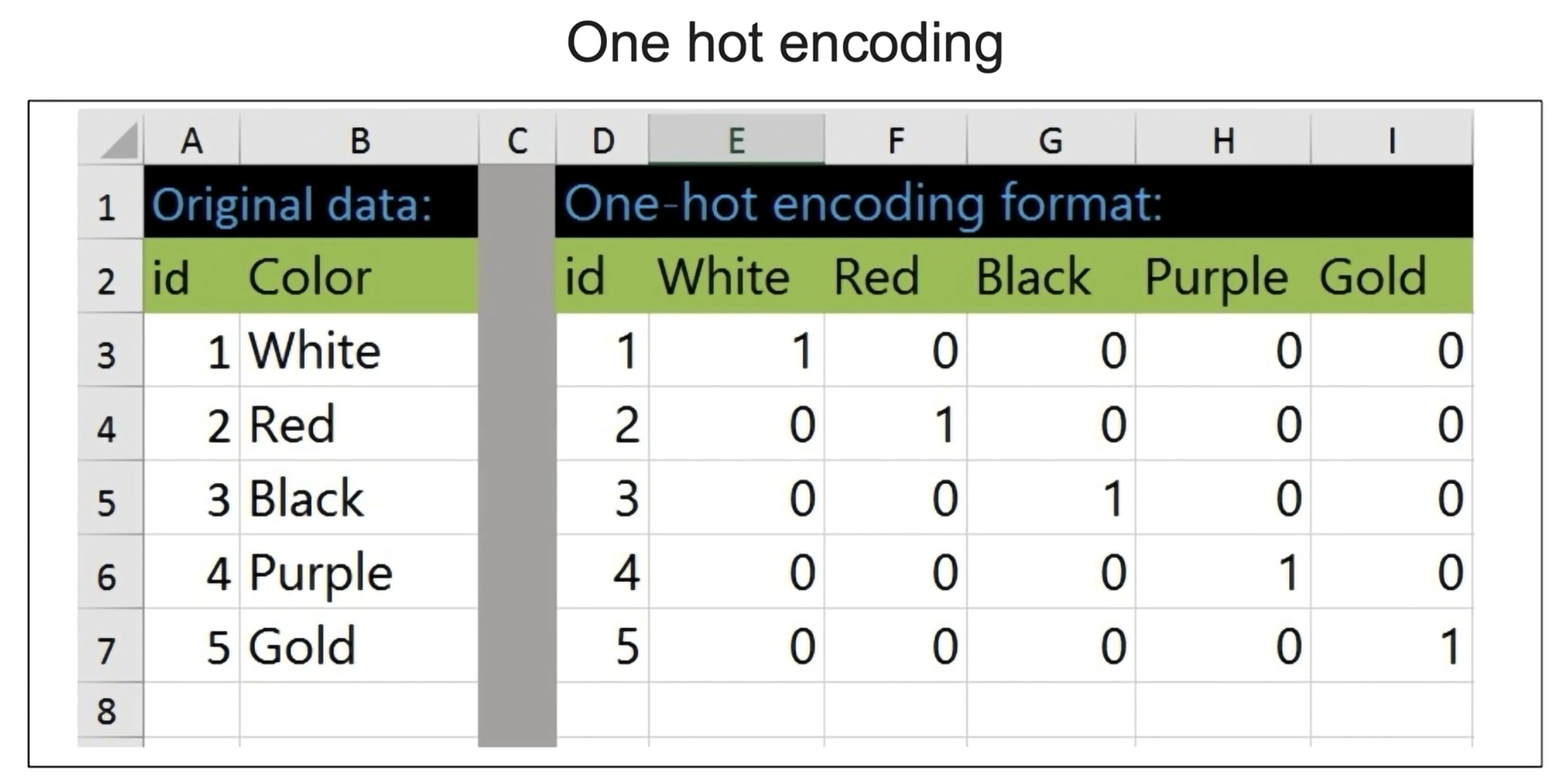 - 예: 레이블 인코딩으로 {Red: 0, Green: 1, Blue: 2}라면 모델이 "Blue > Green > Red"라고 잘못 해석할 가능성이 있습니다. One-hot encoding은 이를 방지합니다.