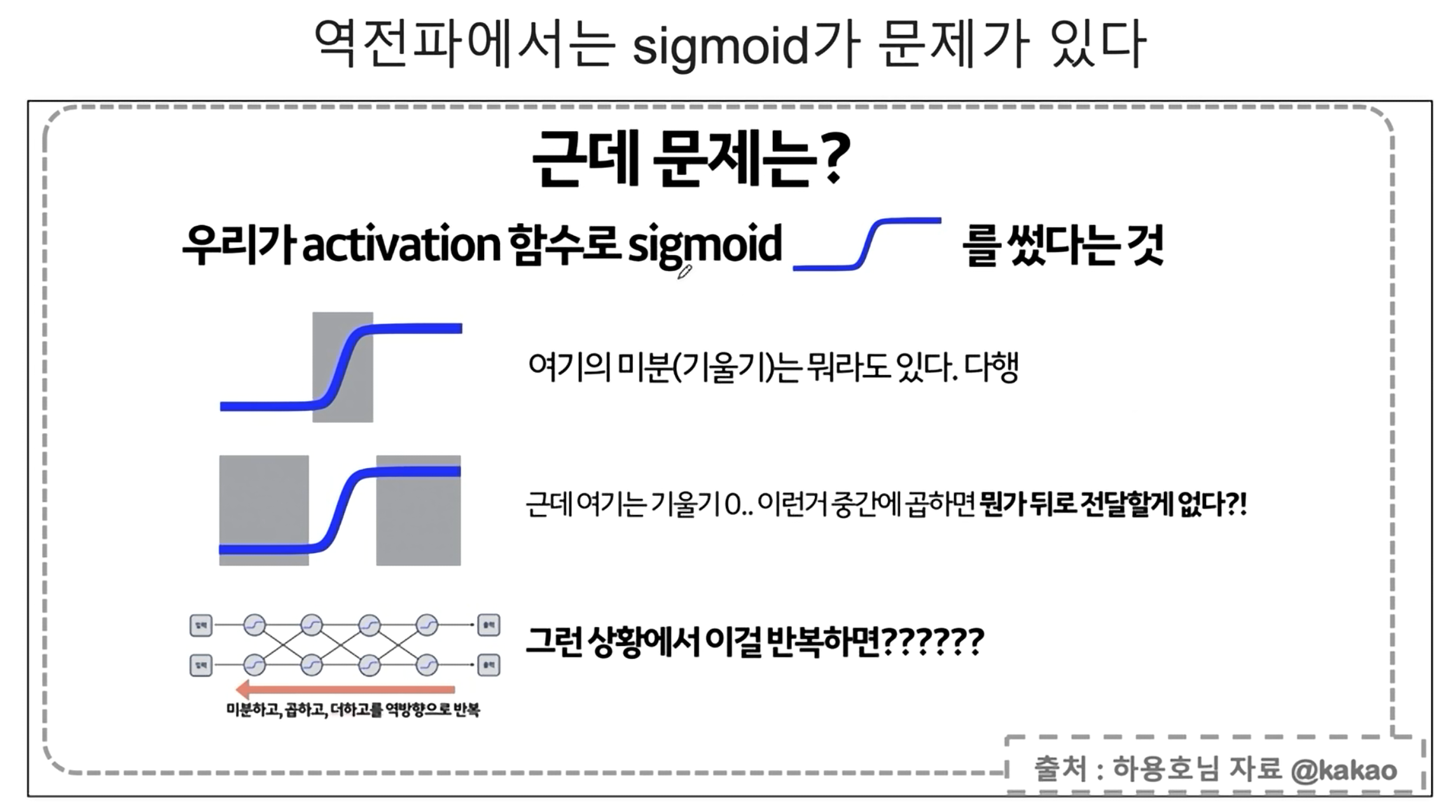 두 개 직선의 계산 결과가 다시 직선이 되지 않도록, 함수를 적용해야 한다 = sigmoid 설정