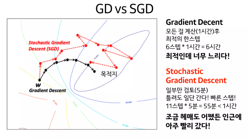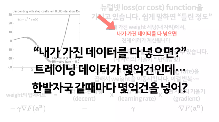 다만 모든 데이터를 가지고 전체 에러를 계산하는건 시간이라는 문제가 생긴다. 너무 오래 걸린다.