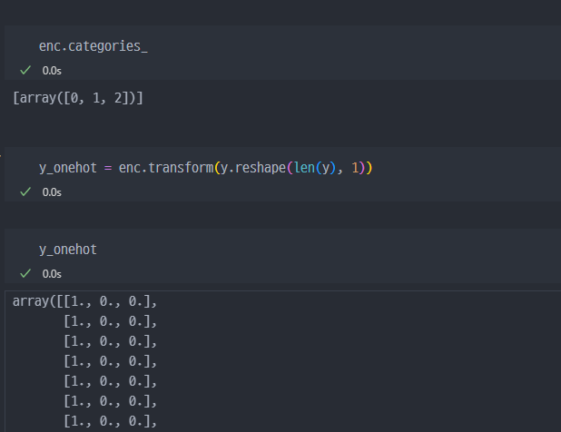 OneHotEncoding을 통해서 y값(라벨값) 형태변경 완료 ( 1, 0, 0 ), (0, 1, 0), (0, 0, 1) 형태