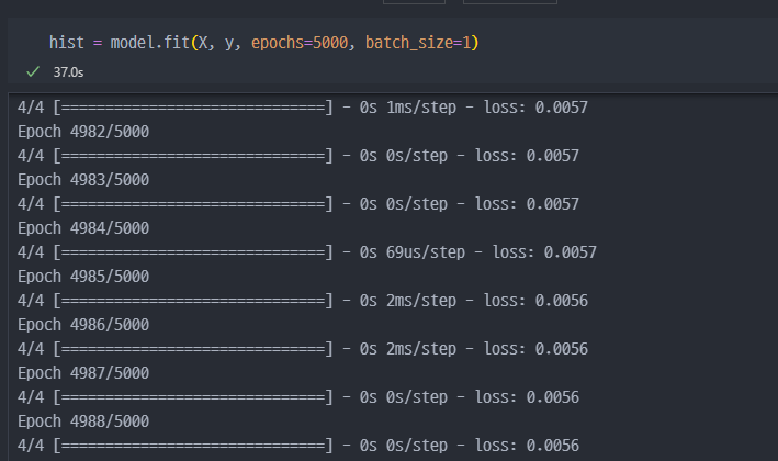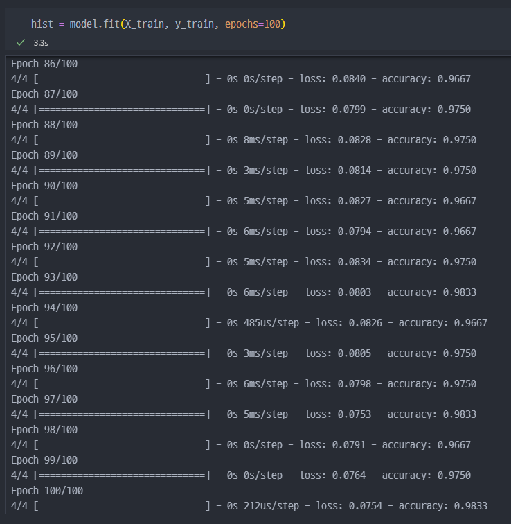 epochs는 지정 횟수만큼 학습을 하는 것batch_size는 한번의 학습에 사용될 데이터 수를 지정