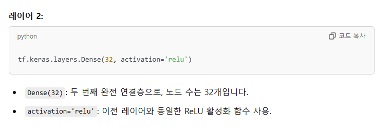 - 두번째 줄은 굳이 입력(input_shape)이 몇개인지 미설정하여도 위에 출력값을 받아온다