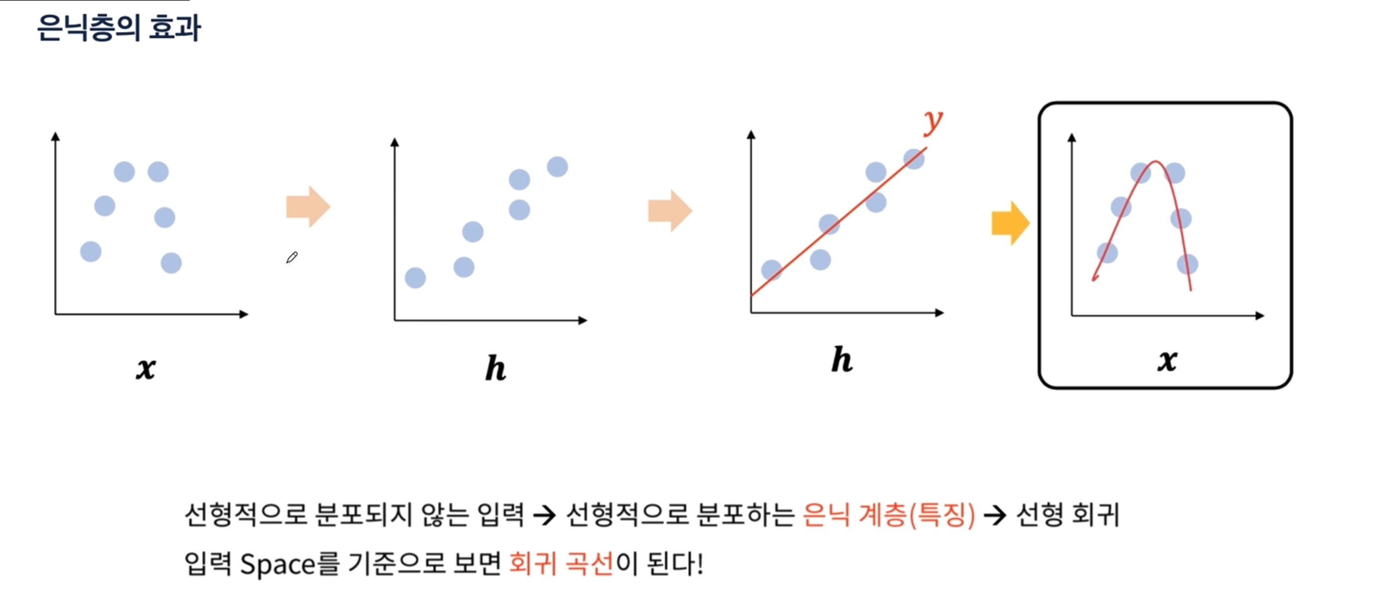 단, 은닉층에선 활성화 함수가 있기때문에, 이야기가 달라지게 된다.
