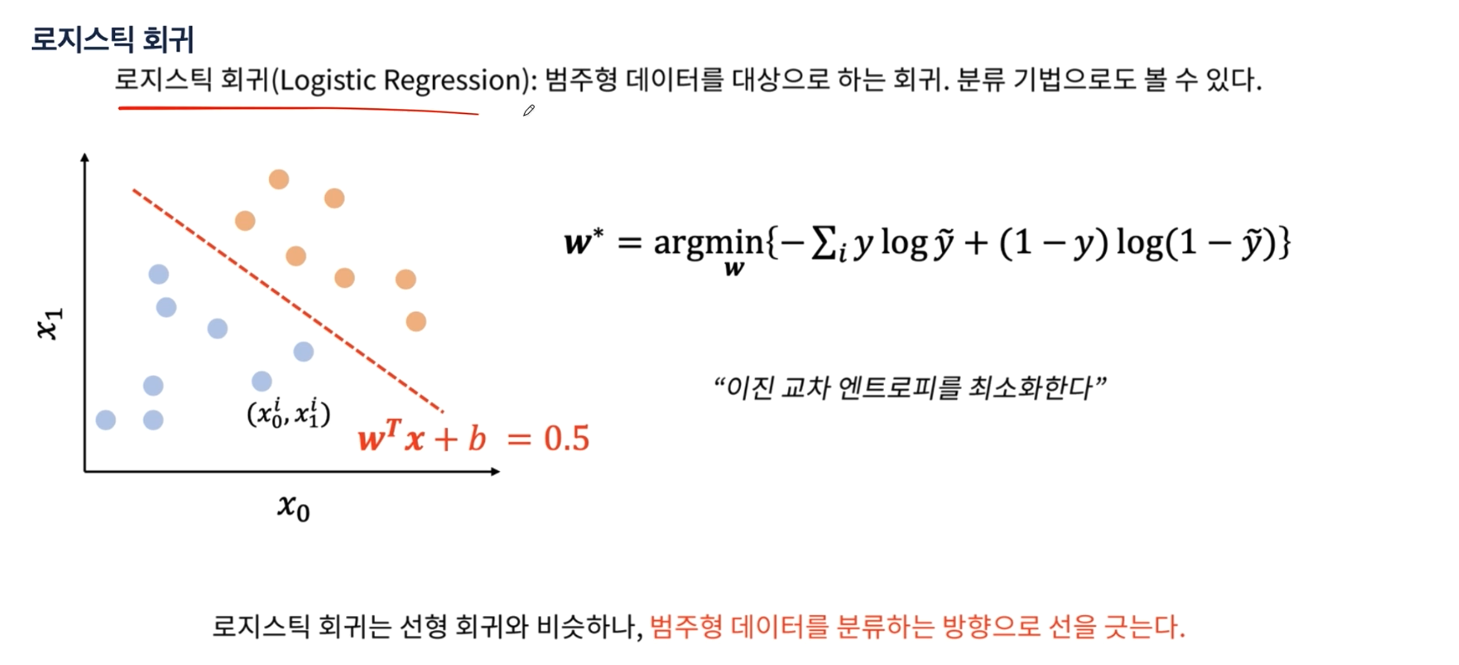 - 로지스틱 회귀 (분류) : 범주형 데이터 대상