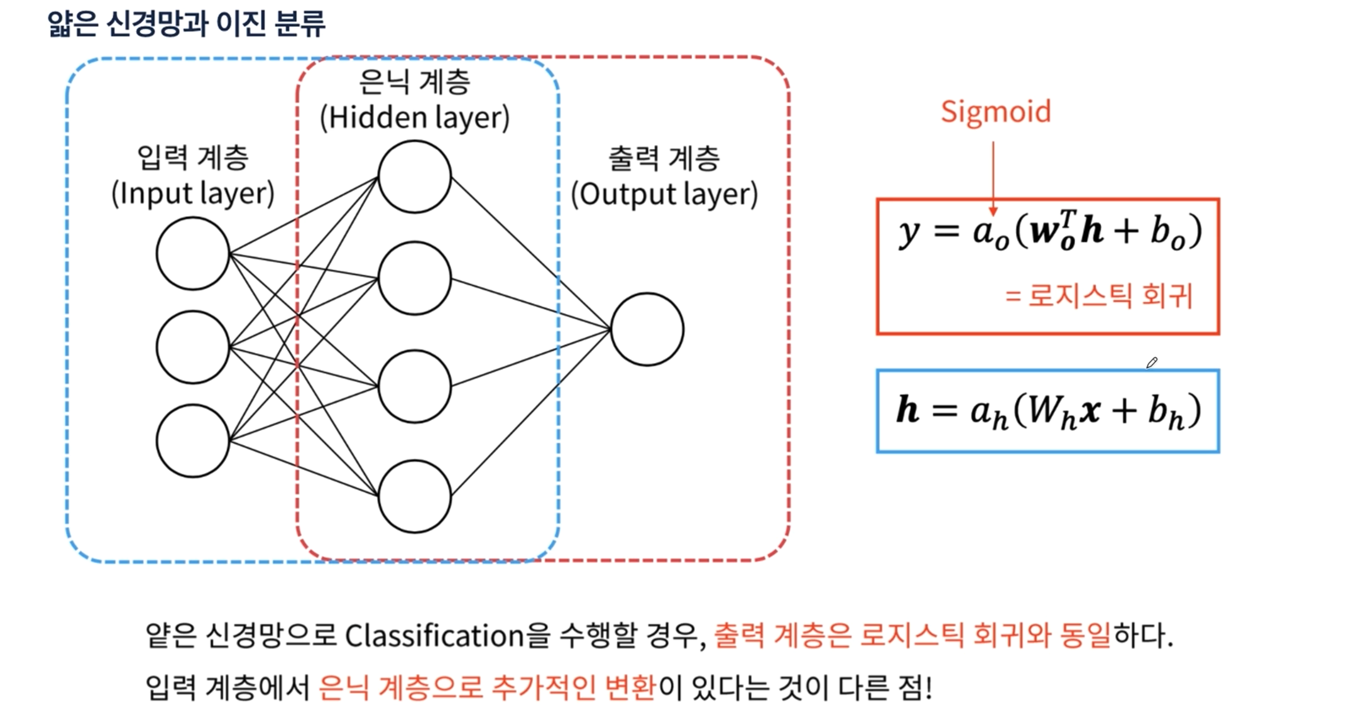 선형회귀(직선하나)와 유사하나 범주형 데이터를 분류하는 직선을 긋는 것에서 차이가 있다.