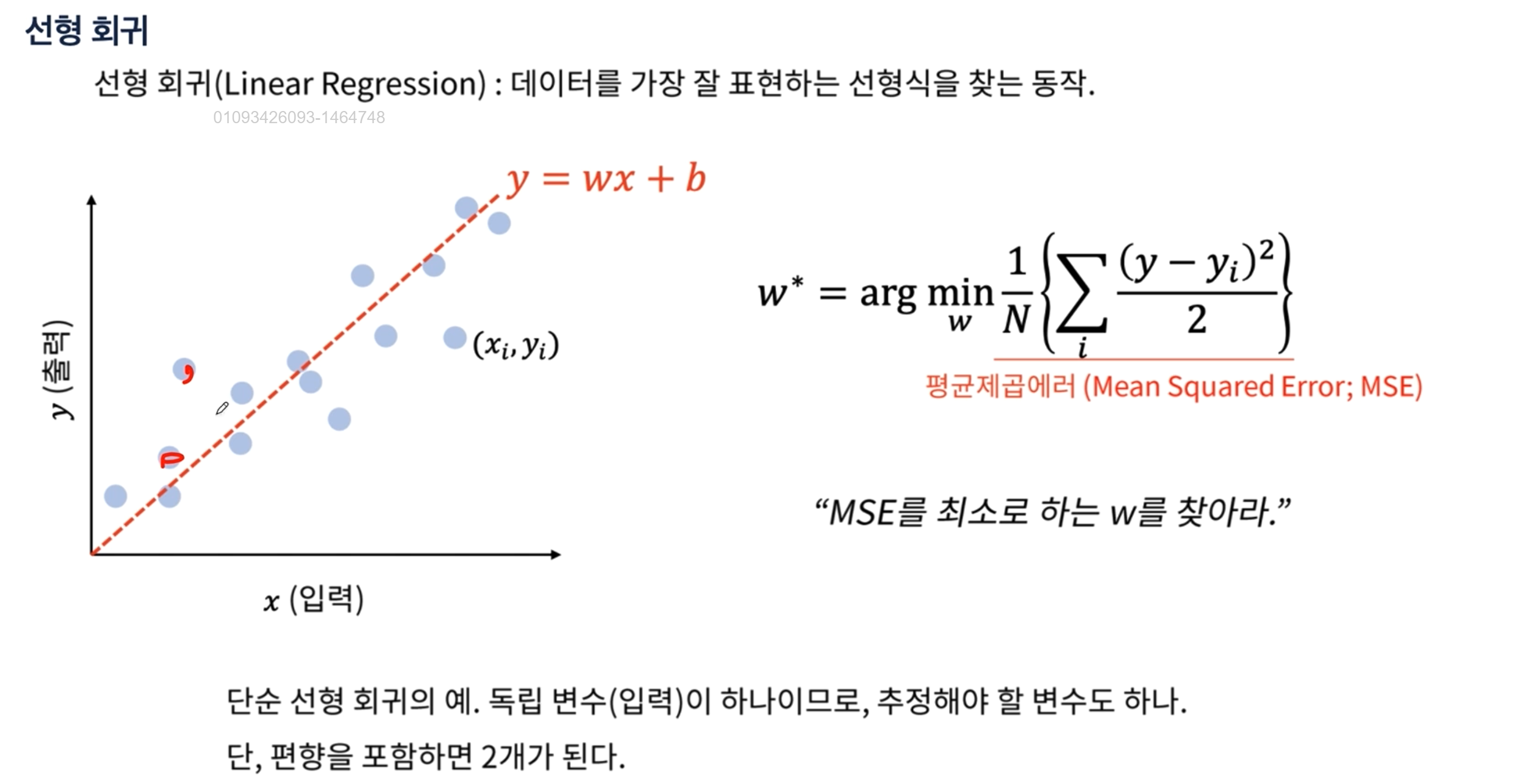 핵심은 w, b를 찾는것이며, 결국 에러(오차)가 가장 적은 w(직선의 기울기)를 찾는 것이다.