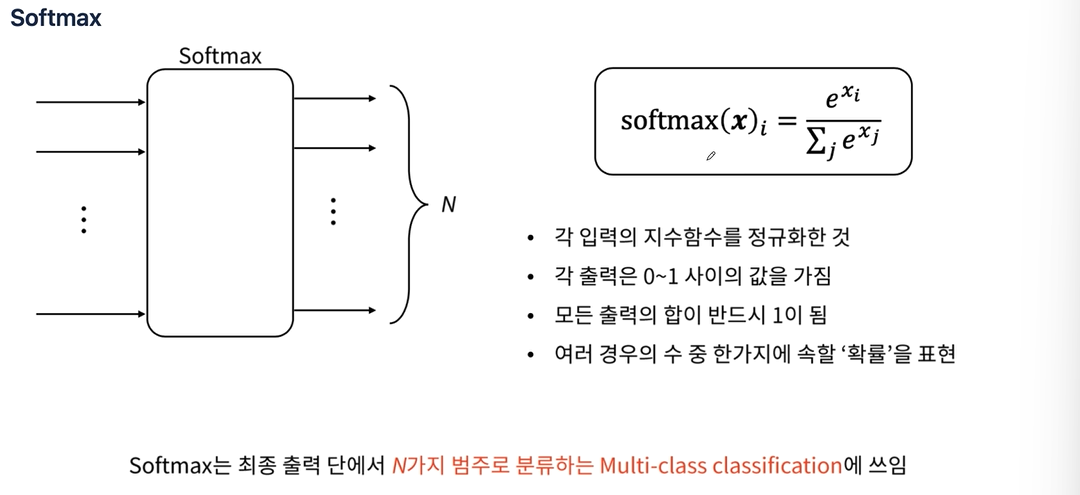 각 출력값은 0~1 사이값을 가지며, 모든 출력값의 합이 반드시 1이 된다.
