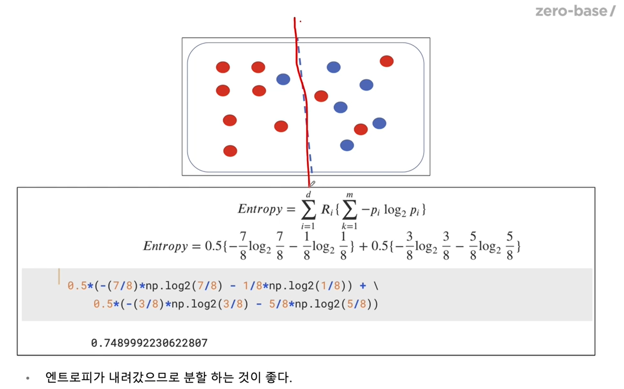 분할을 통한 엔트로피 감소 → 이 경우 분할하는 것이 좋다.