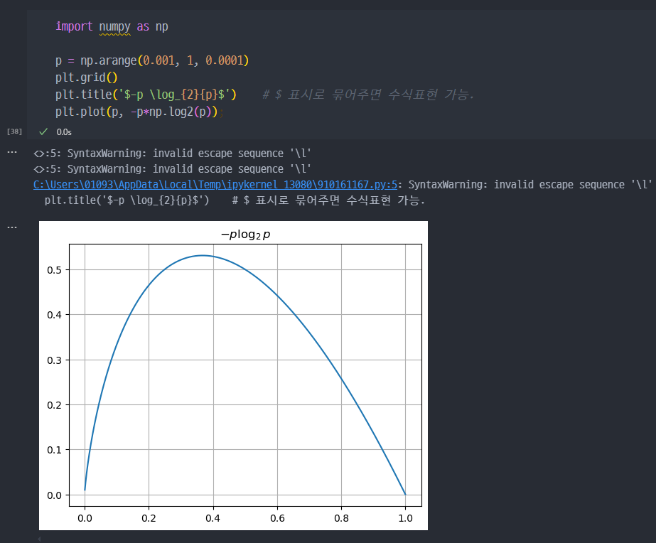 - 어떤 확률 분포로 일어나는 사건을 표현하는데 필요한 정보의 양이며, 이 값이 커질수록 확률 분포의 불확실성이 커지며, 결과에 대한 예측이 어려워짐.