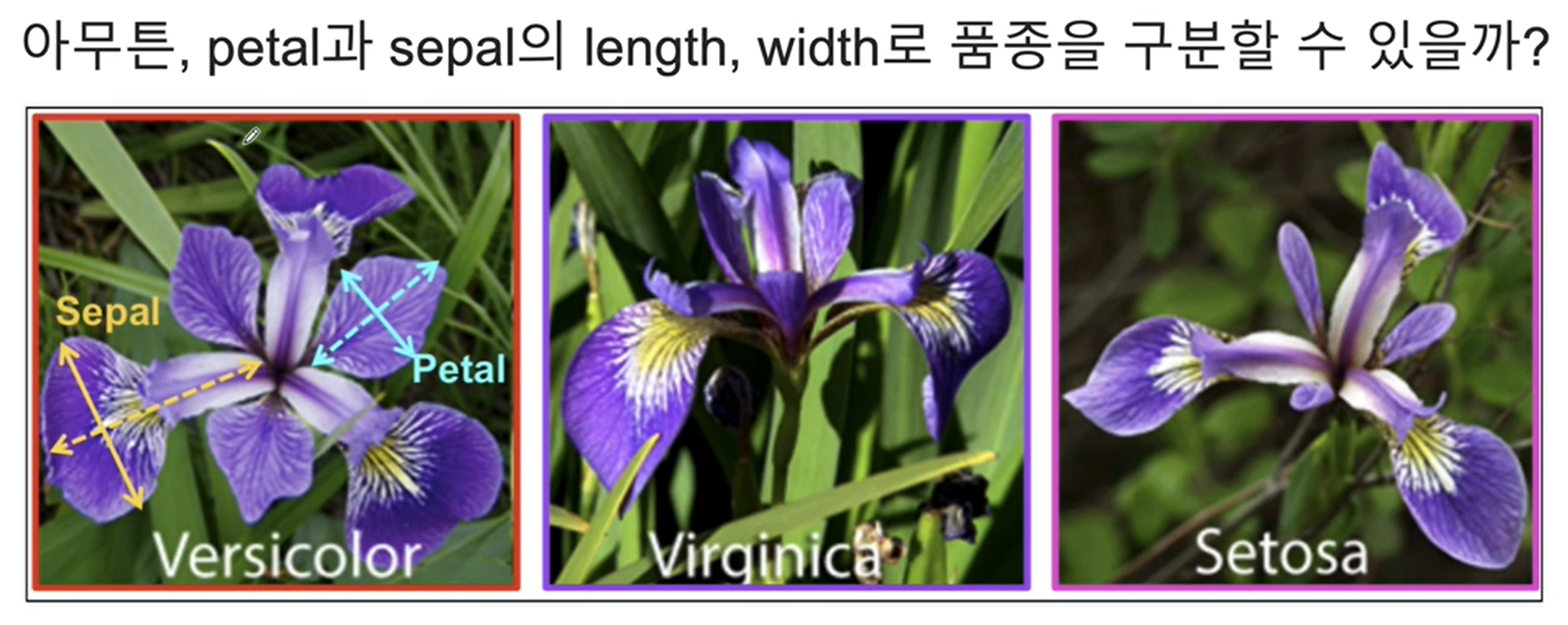 - 결국 사람도 구분하기 위해서는 IRIS(붓꽃)의 특성을 공부하고 품종을 공부해야 한다.
