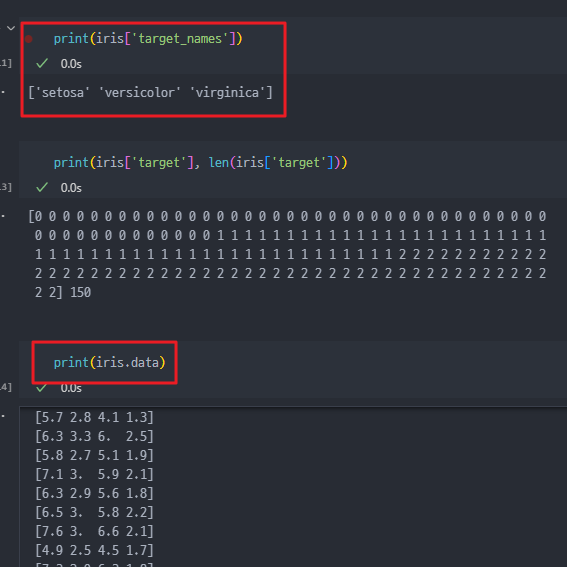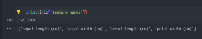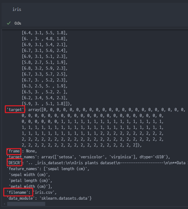 - 실제 IRIS 데이터는 Dict와 유사한 형태로 데이터가 저장된 것을 확인.