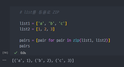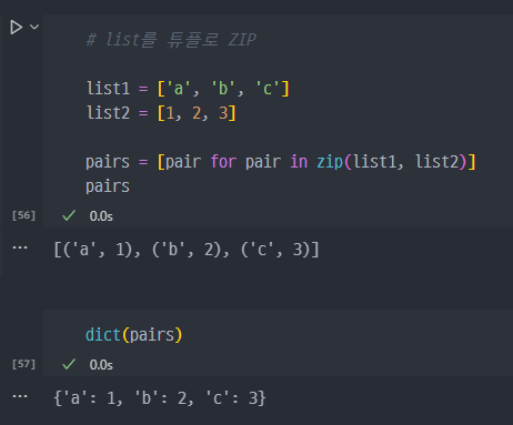 - 아래의 방법으로 바로 zip 하여 dict 형태로 변환도 가능하다.