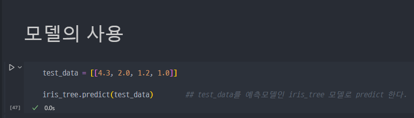 - 완성한 예측모델은 아래와 같이 사용하여 예측할 수 있다.