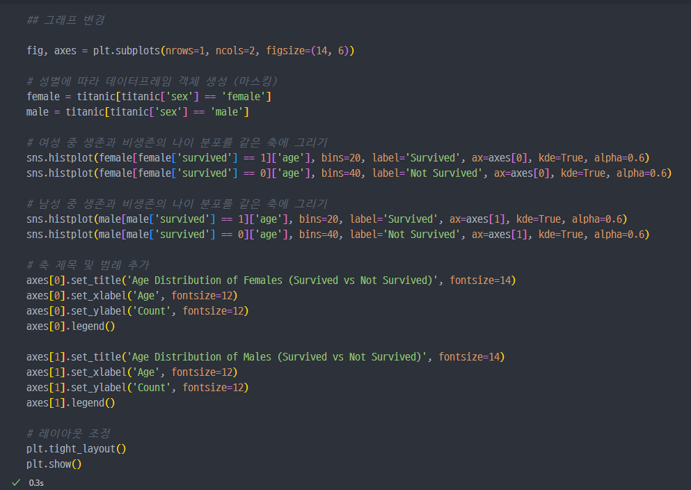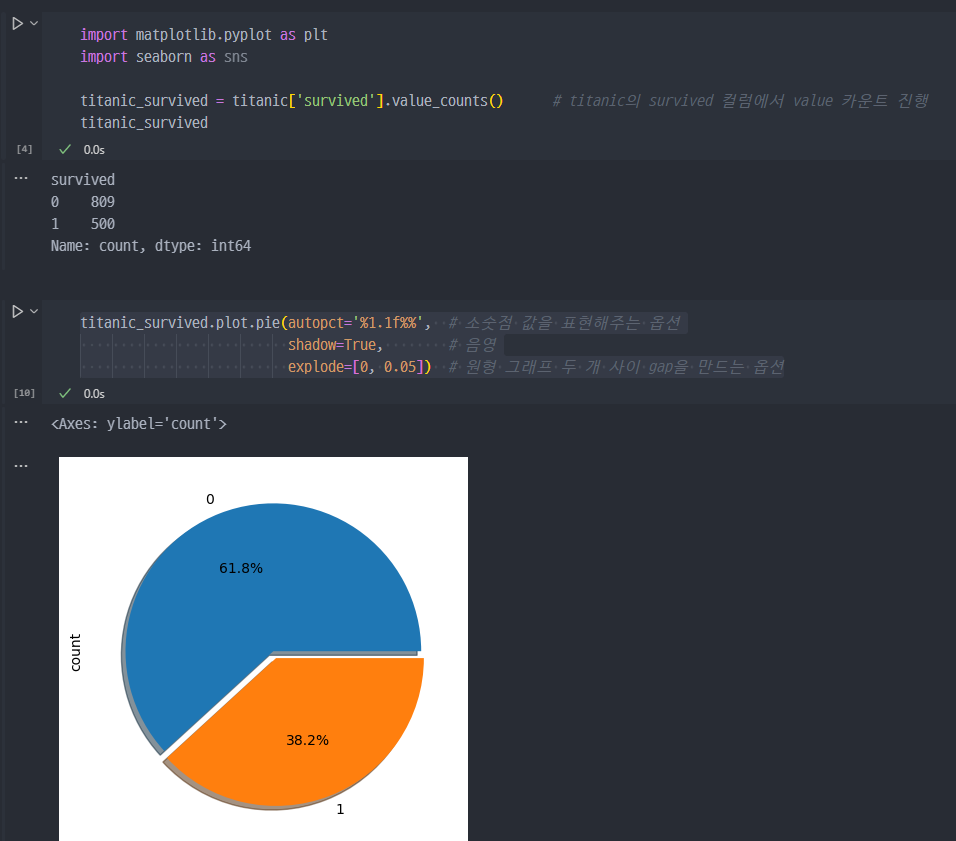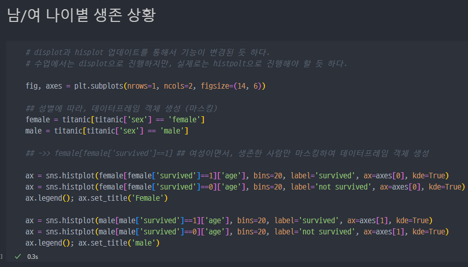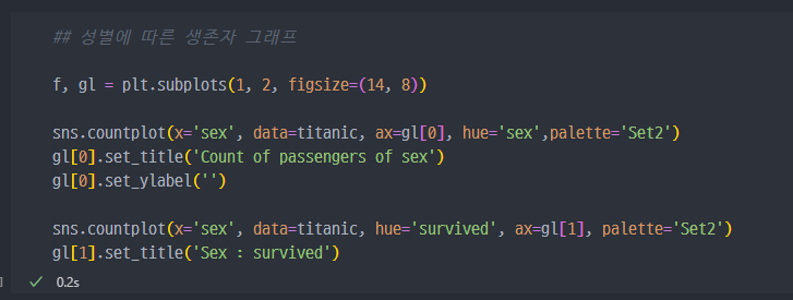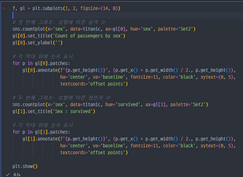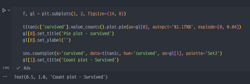 - 탐색한 데이터에 대하여, 생존자 현황 그래프로 그리기