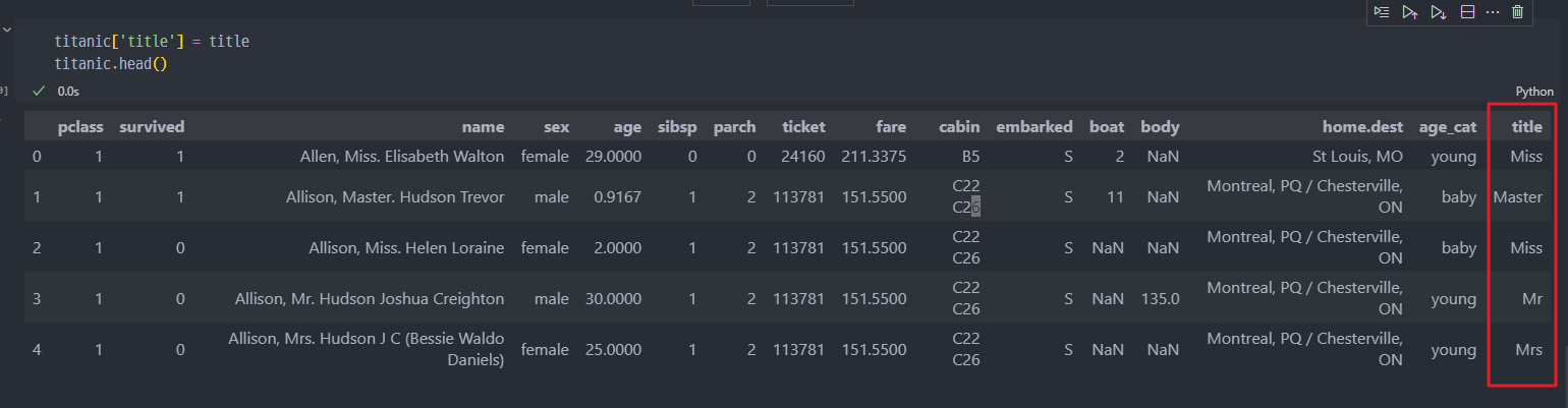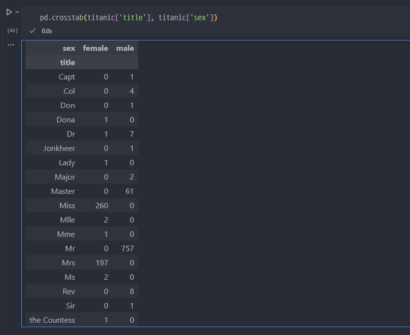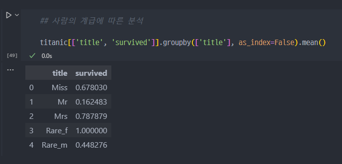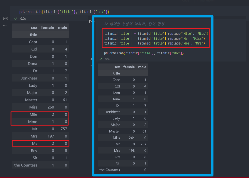 - 나머지 부분에 대하여, Mr/Miss/Mrs 와 또는 Rare_f / Rare_m 으로 구분한다.