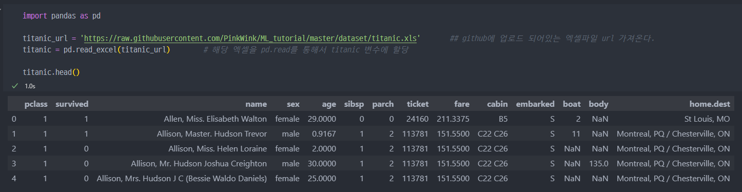 타이타닉 데이터는 연습문제 1번과 같은 느낌.