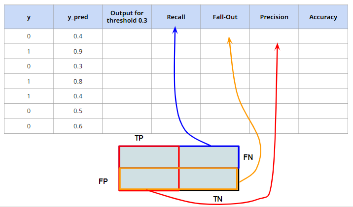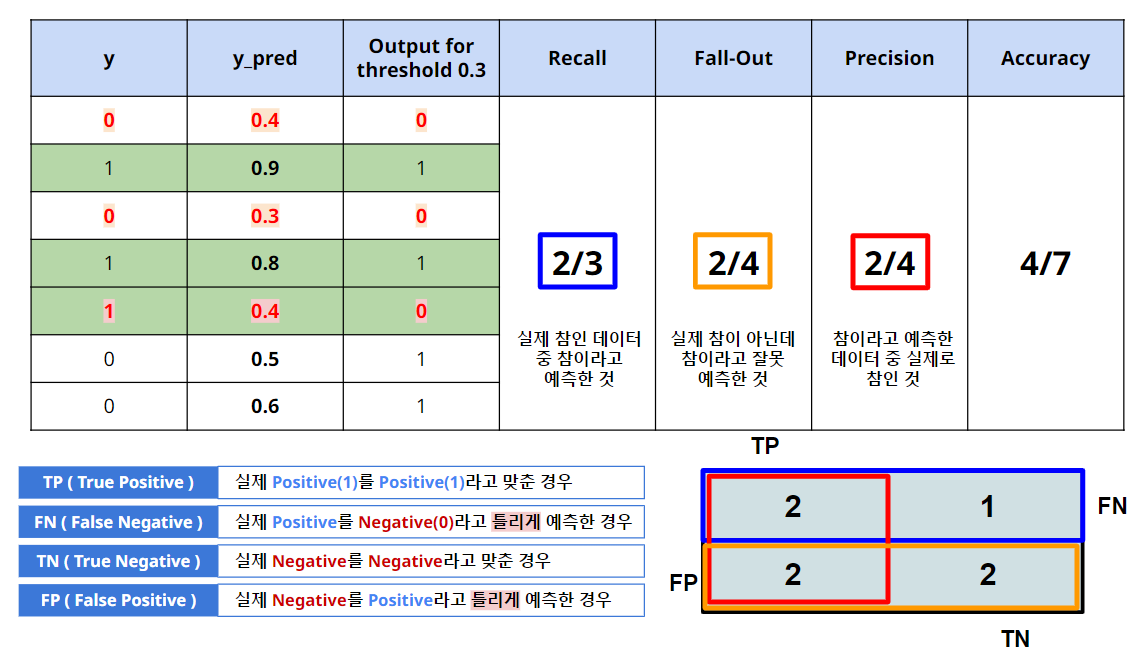 y_pred 가 0.3인 데이터는 False(0)으로 예측.