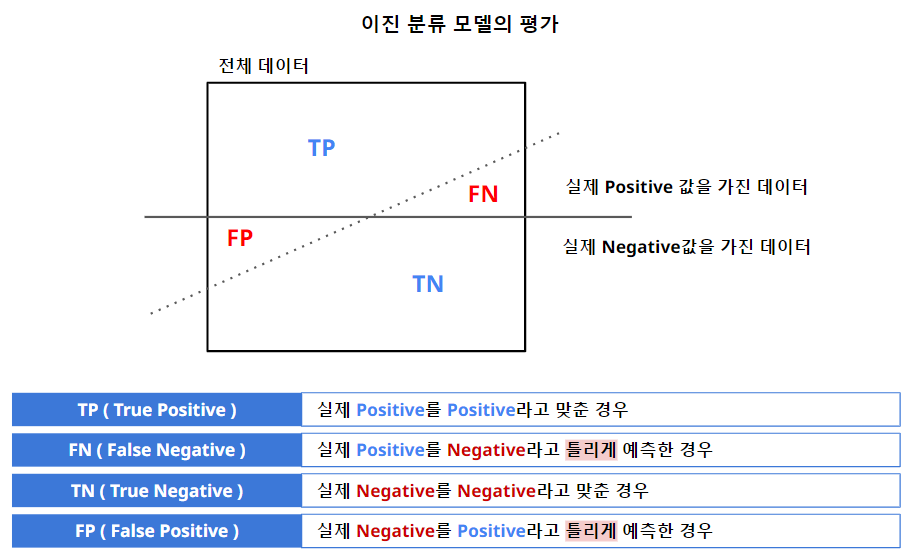 - 분류모델 (Classification Model) : 분류모델의 평가 항목은 조금 복잡하다.