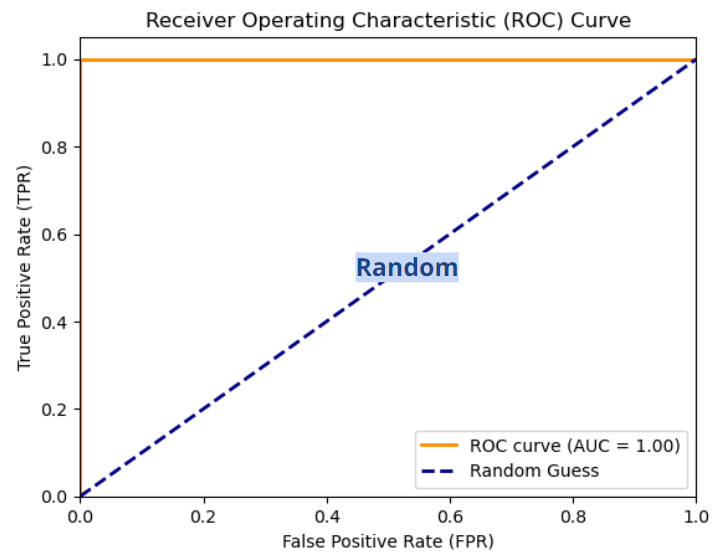 ROC 곡선은 다양한 Threshold 값을 기준으로 참 양성 비율(TPR, True Positive Rate)과 거짓 양성 비율(FPR, False Positive Rate)의 변화를 보여주는 그래프입니다.