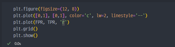 임계값을 변경하면 TPR과 FPR이 변하게 되며, 이를 통해 ROC 곡선이 형성됩니다.