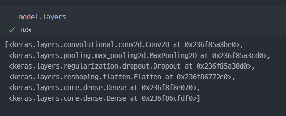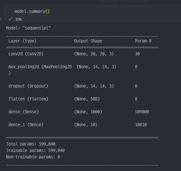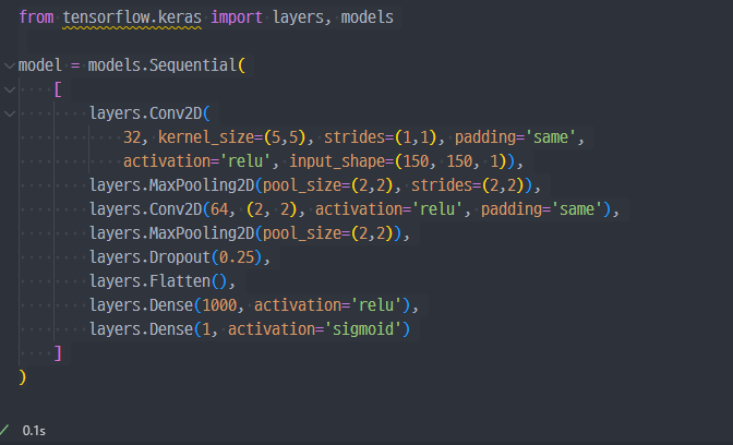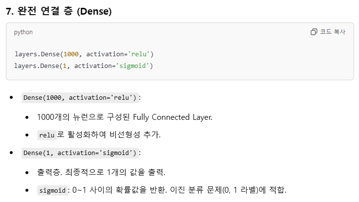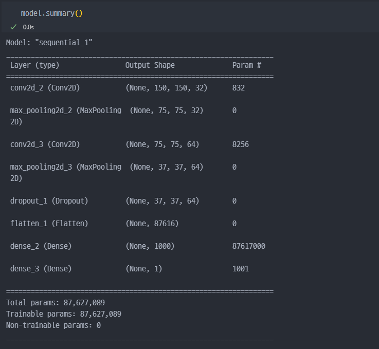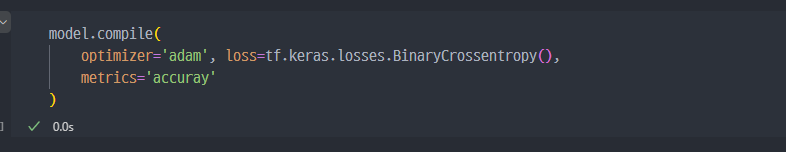 layers를 보면 출력은 1이고 활성화함수는 sigmoid인 것을 바라보았을 때.... 결국 0과 1 사이의 값 1개가 출력(결과)로 나온다는 것을 알 수 있다.생성한 모델의 설명