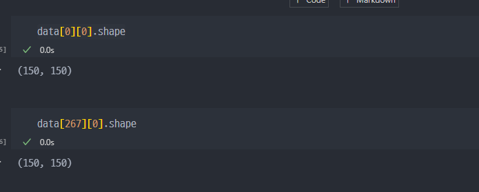 위 데이터도 150X150으로 적용했다.