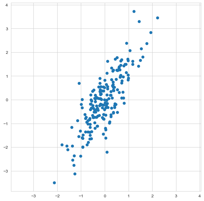 X = np.dot(rng.rand(2, 2), rng.randn(2, 200)).T