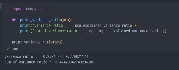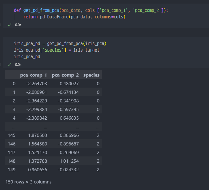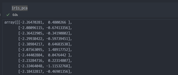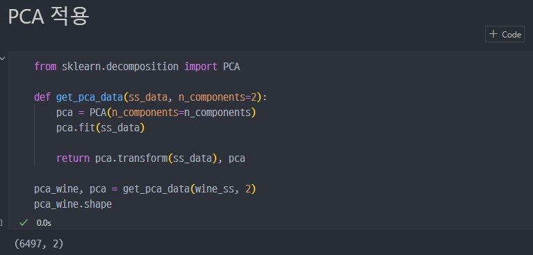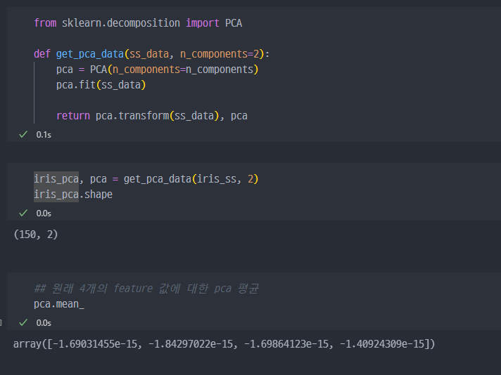 return 값으로 pca된 데이터 및 pca 객체를 받는다.