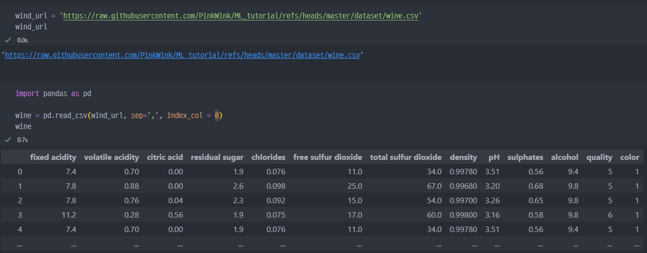 GitHub에서rawdata불러오기 진행.feature데이터와label데이터 분리