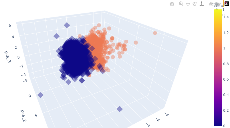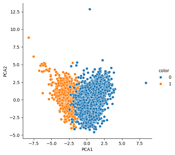 pca진행 시 아무래도 데이터의 축소가 이루어지고,component역시 2개만 선택되는 영향인 것 같음.