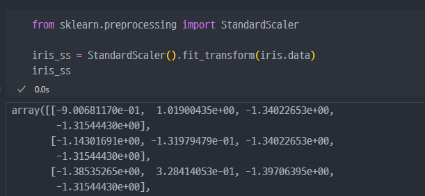 iris data에 StandardScaler적용 진행