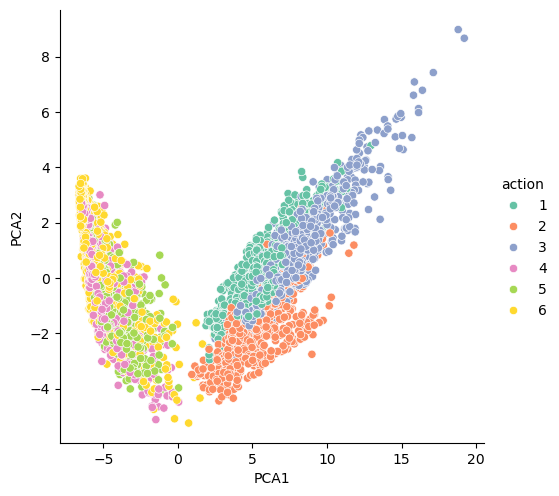 feature가 561개인데, 이러한 datasets의 feature를 2개로 줄이니... 구분이 쉽지 않은것 같다.