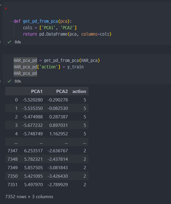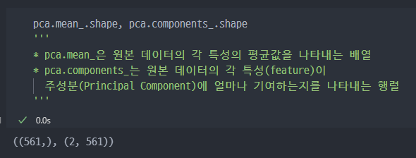 n_components를 2로 설정했으므로pca진행 된 컬럼개수는 2개 (벡터가 2개)