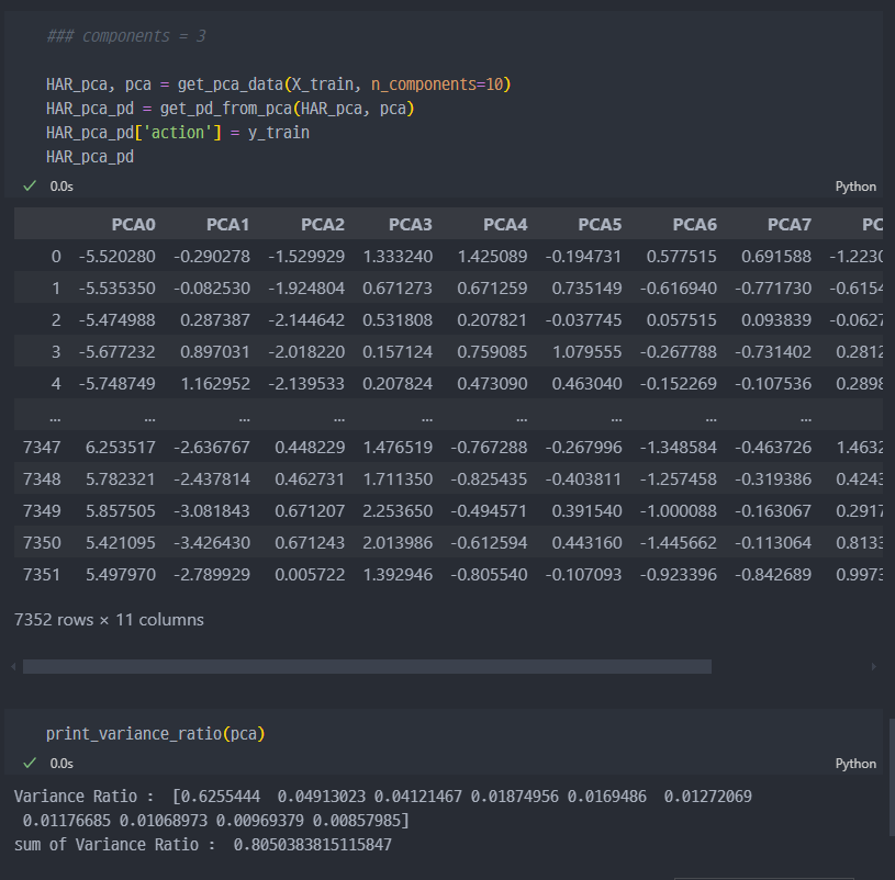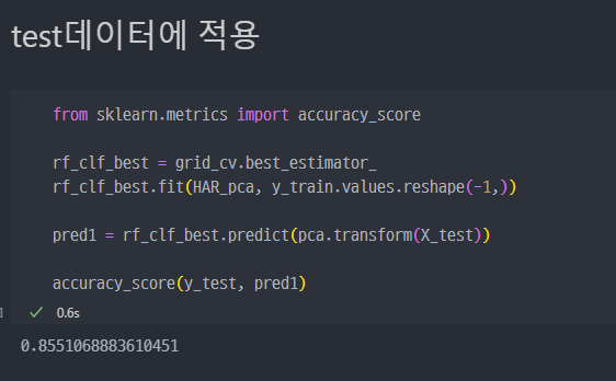 X_test데이터를 사용할 때 별도로fit_transform()을 하거나pca.fit()을 진행하면 안된다.X_train데이터를 이용해fit()즉 학습된pca객체를 그대로 이용해야 한다. 그렇기에X_test데이터는fit()과정이 없고 바로pca.transform()과정만 진행된다.