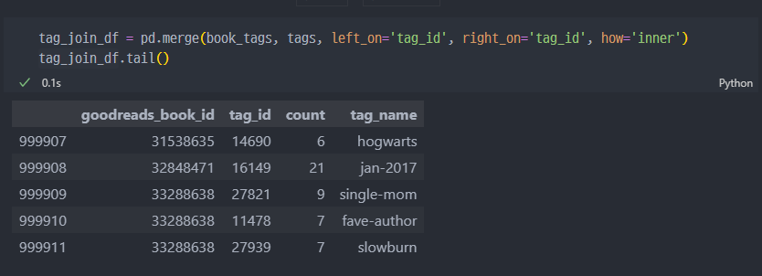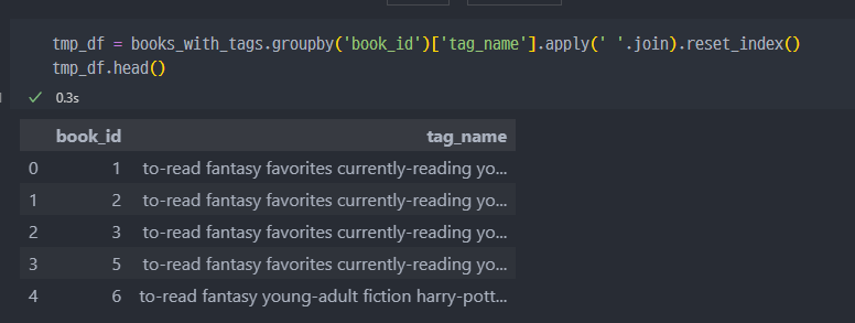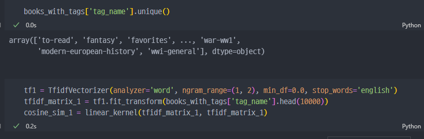 추천책을 반환하는 함수 ( tag_name 컬럼 분석값을 이용해서)