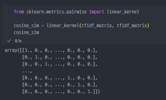 추천시스템이란 건 정답이 있는게 아니다. 어떤 컬럼으로 분석을 진행해서(유사도) 보여줄지를 선정하는것을 고민해야 한다.