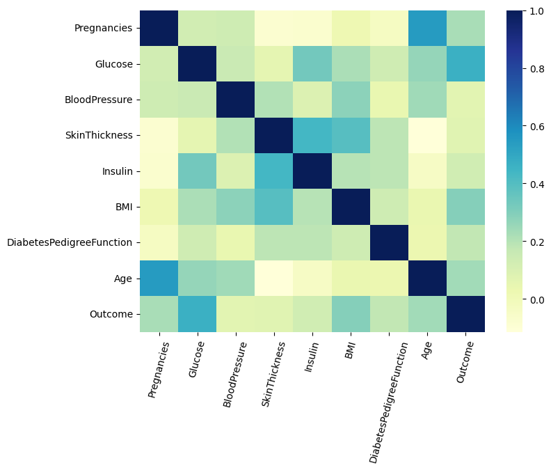 Pregnancies : 임신 횟수Glucose : 포도당 부하 검사 수치BloodPressure : 혈압SkinThickness : 팔 삼두근 뒤쪽의 피하지방 측정값Insulin : 혈청 인슐린BMI : 체질량지수DiabetesPedigreeFunction : 당뇨 내력 가중치 값Age : 나이Outcome : 클래스 결정, 당뇨 유무 (정답값)