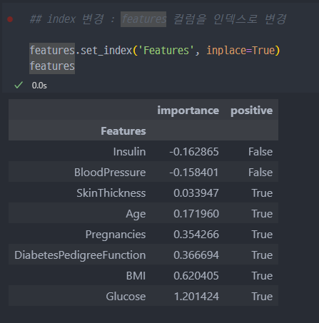 - 포도당, BMI 등은 당뇨에 영향을 미치는 정도가 높다