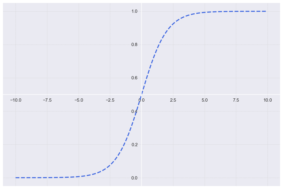 ax.plot(z, g, color="royalblue", linestyle="--", linewidth=2.5,)