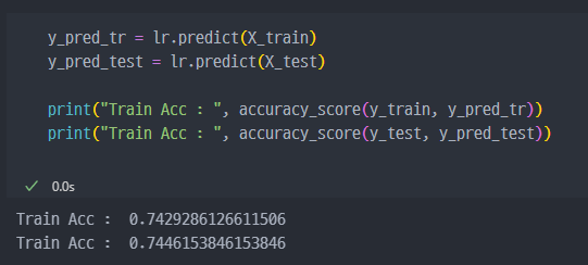 2) Train, Test 데이터 생성 및 간단 Logistic Regression 진행