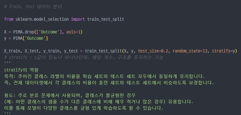 Train_test_split으로X(특성값들),y(정답값) 데이터 나누고..