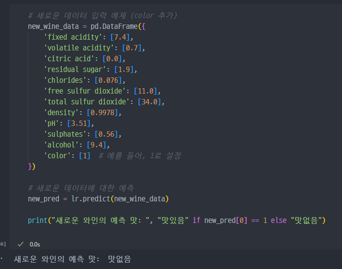 feature에 대한 값들을 주어주면, 학습모델에 의해서맛있음(1)또는맛없음(0)을 예측한다.