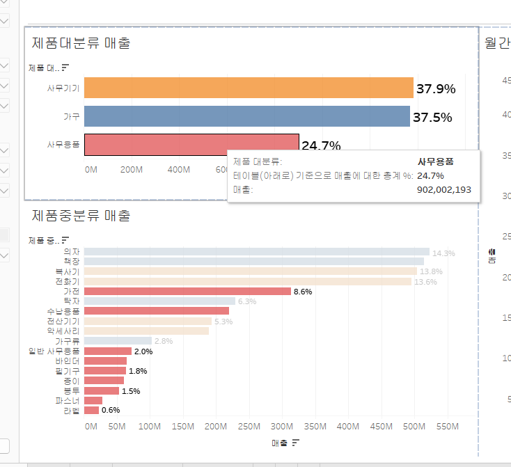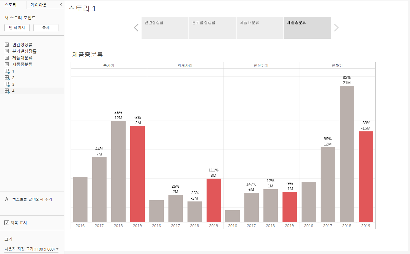 - 연간매출에서 년도 선택 시, 제품매출 or 월간매출 등이 해당 년도에 맞는 데이터로