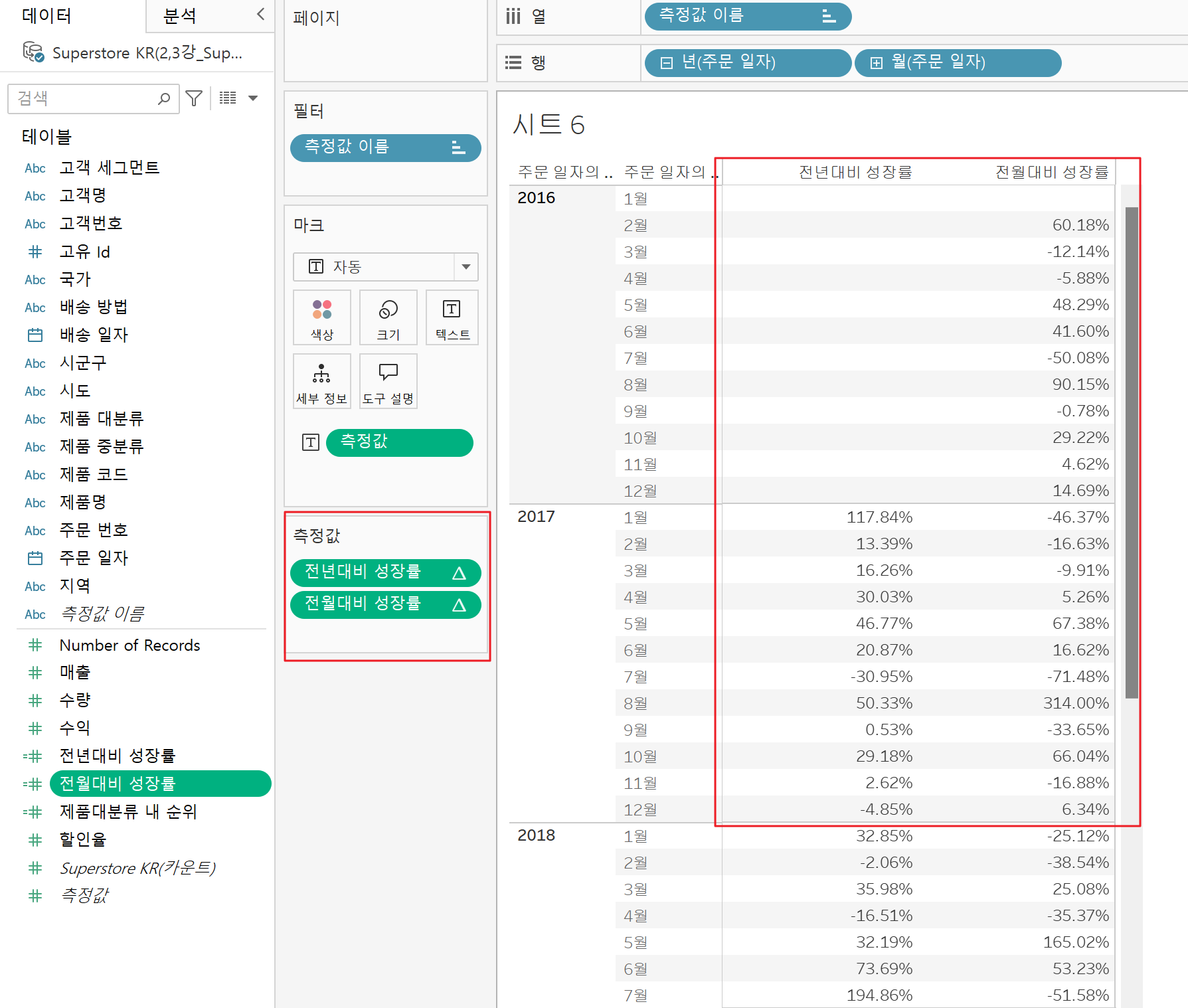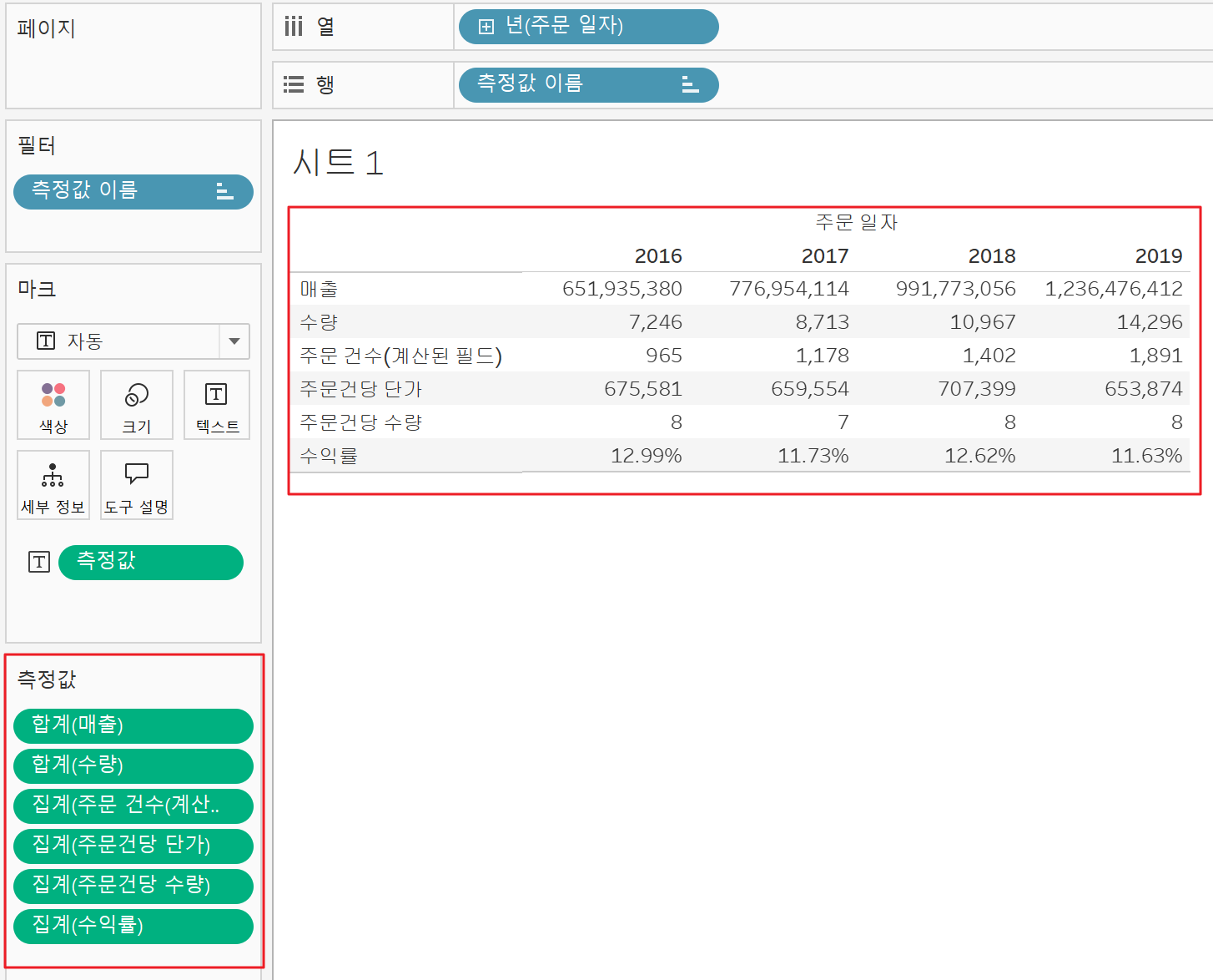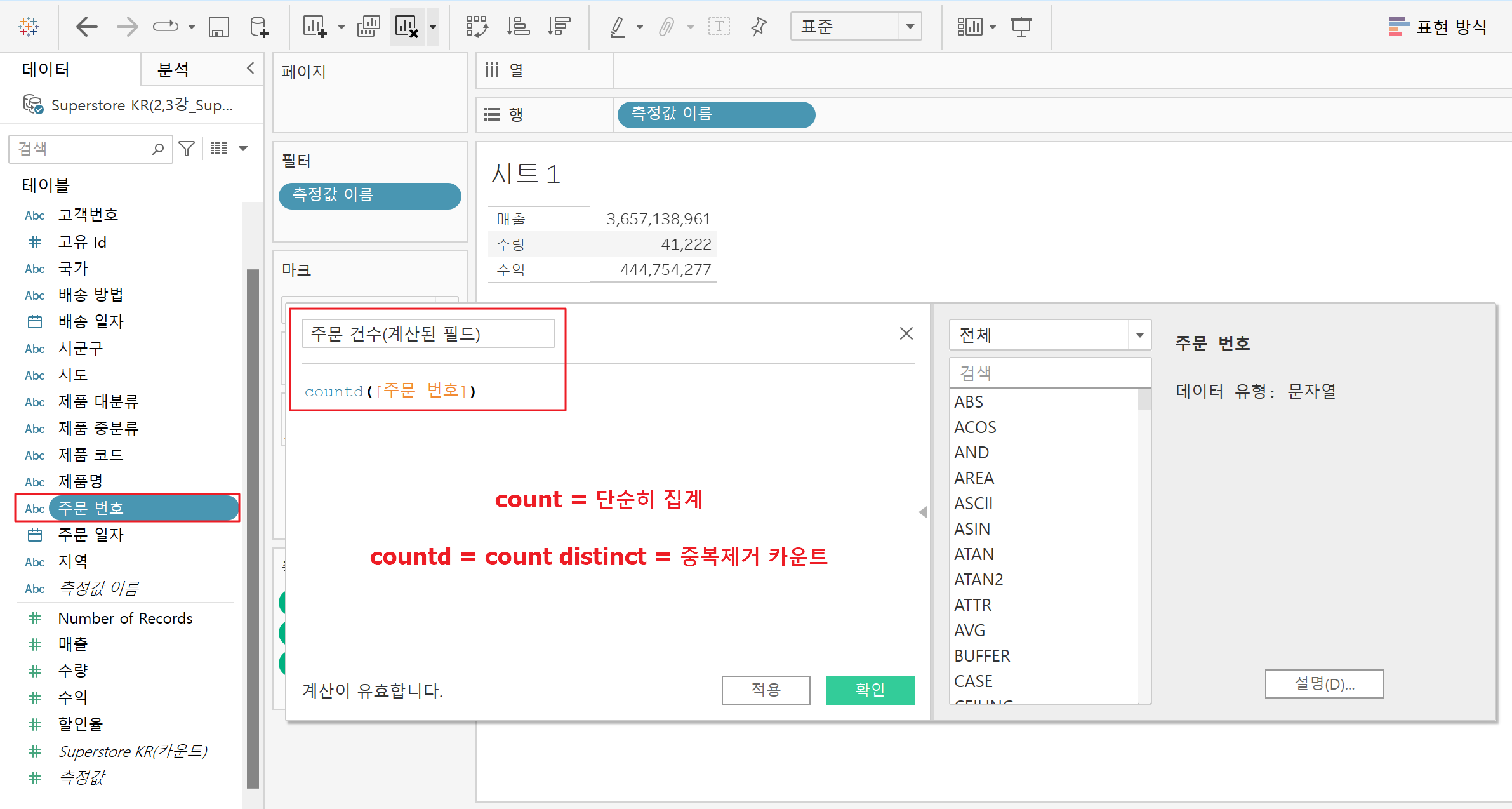- 계산된 필드 만들기 - 주문 건수 만들기 ( 주문 번호 데이터 원본 이용 )