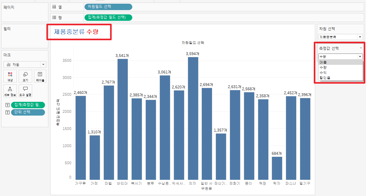 - 매개변수와 매출을 계산식으로 엮어서, 목록형 매개변수 만들기.
